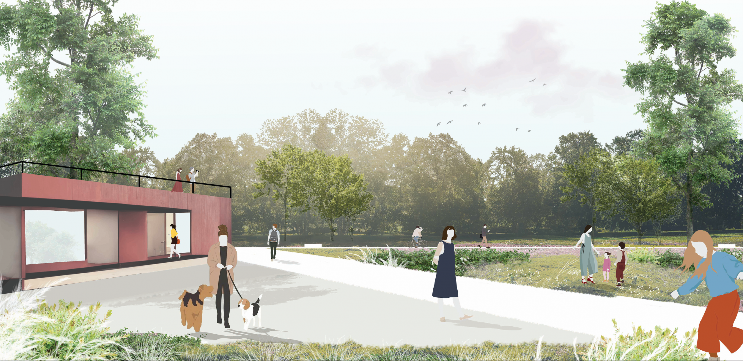 Questa è la genesi del progetto proposto: un anello, un “Bosco ellittico”, un segno a scala territoriale, che mette in relazione, internamente ed esternamente, paesaggi diversi, flussi e attività legati alla conoscenza dell’habitat naturale, allo sport e al tempo libero, all’agricoltura sostenibile e al coinvolgimento dei cittadini visitatori in attività legate al territorio, passato e futuro della città.